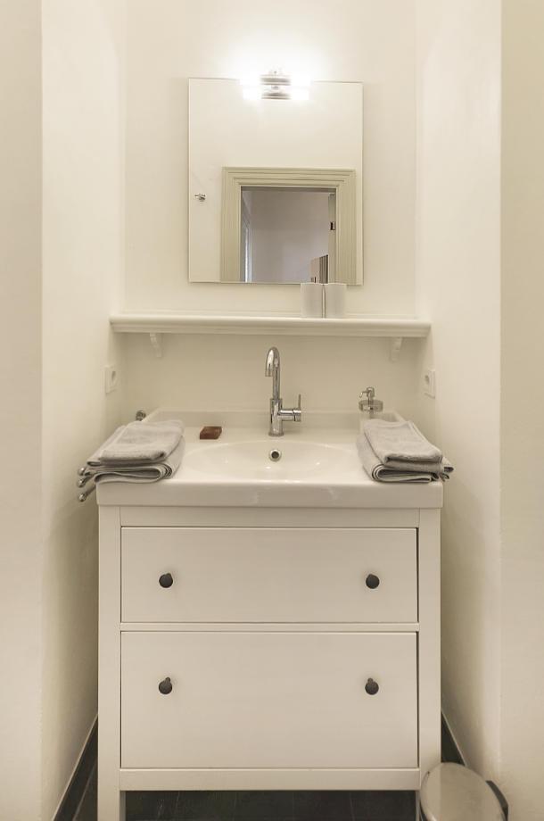 - Bad: WC, Waschtisch und begehbarer Dusche.